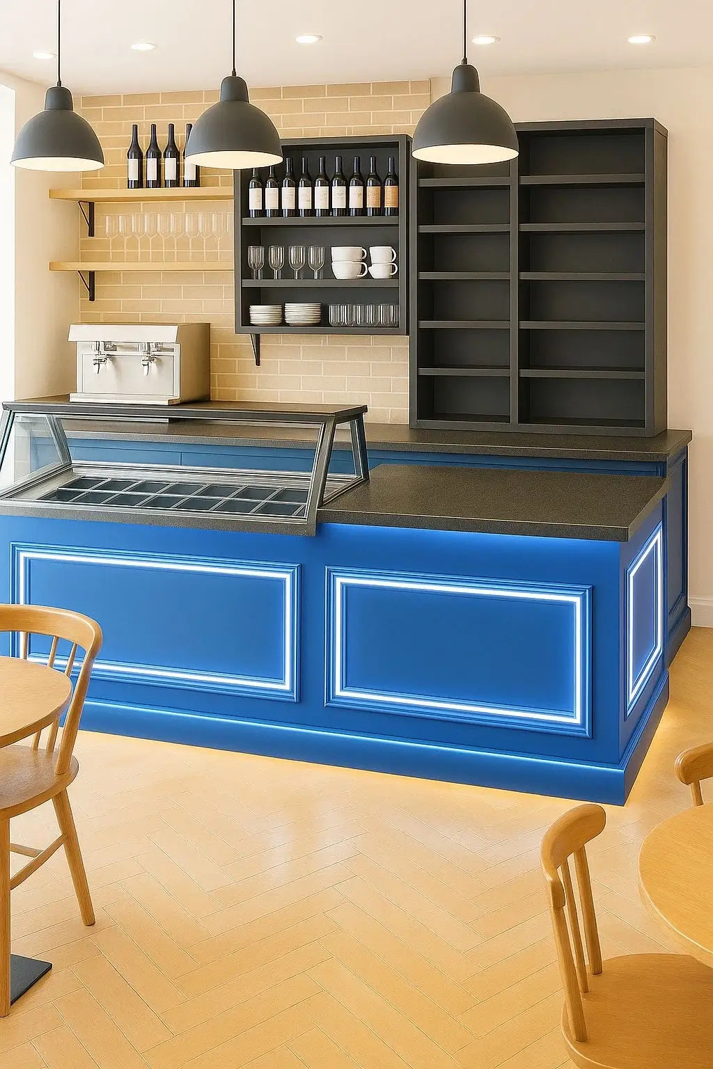 Waffle ve kumpir satış noktaları için özel tasarlanmış, fonksiyonel servis dolapları.